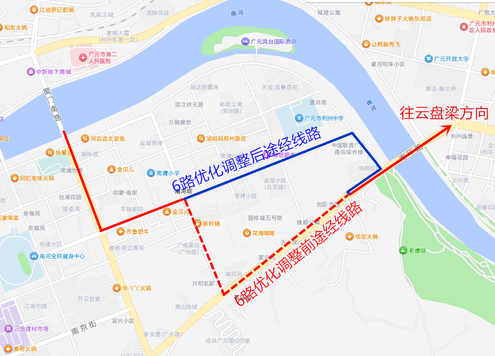 調(diào)整路段:南河郵政局經(jīng)老鷹嘴大橋至苴國(guó)廣場(chǎng)