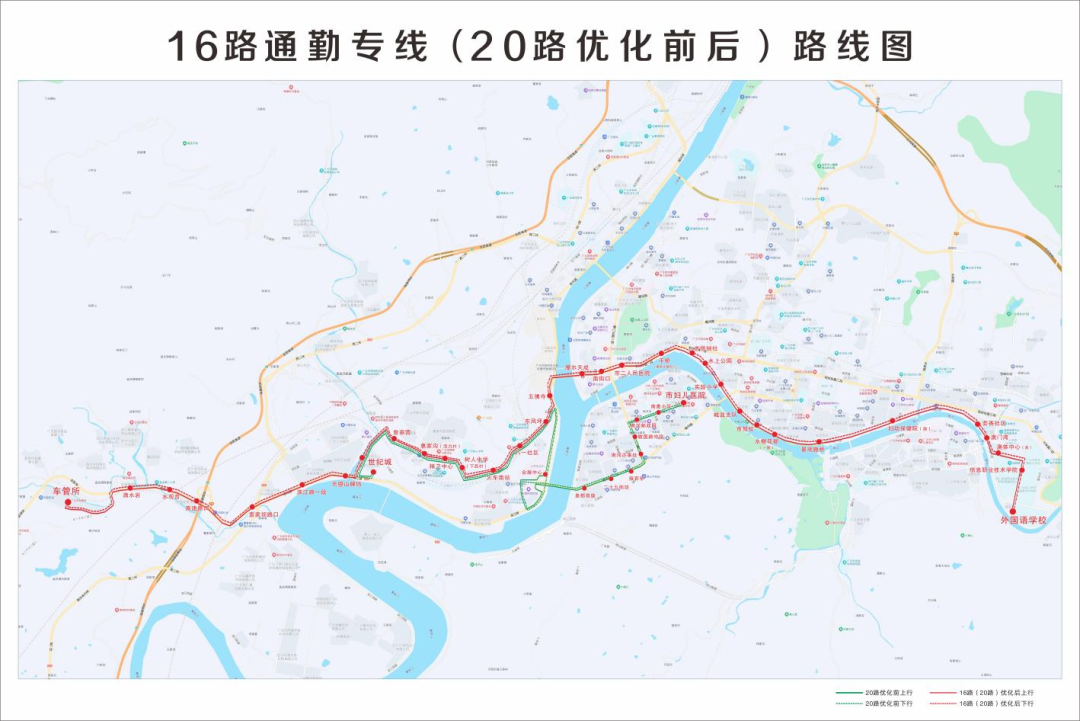 16路通勤專線(20路優(yōu)化后)的站點(diǎn)明細(xì):